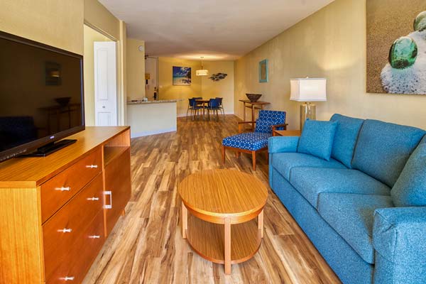 Kauhale Makai resort fronts a beautiful Hawaii conservation shoreline with a putting green, Jacuzzi, barbecue and swimming pool on-site. In Kihei and nearby Wailea, there are many fine restaurants, art galleries, championship golf courses, and beautiful swimming beaches. In fact, Maui is famous for water sports, diving, snorkeling, and windsurfing are often judged among the world’s best. Sightseeing awaits you in Maui. Enjoy!